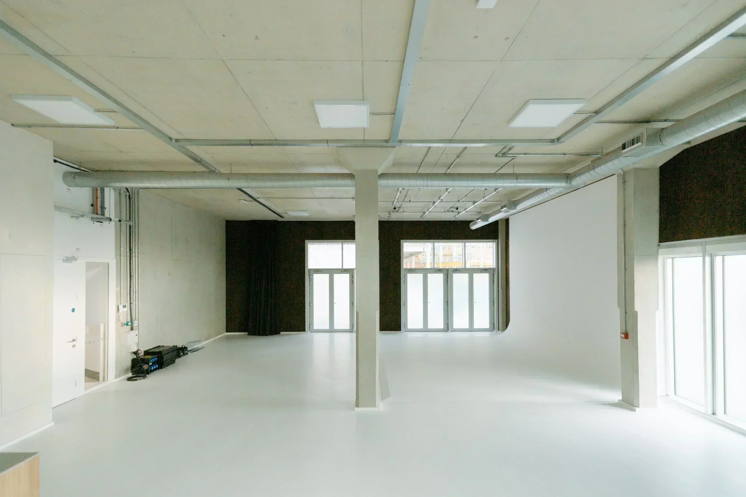 Daylight can be used creatively, while our full blackout setup allows complete control over lighting conditions across long filming sessions.